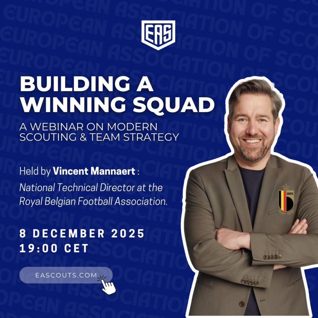 ✨ The European Association of Scouts is delighted to announce a special online session hosted by Vincent Mannaert National Sports Director at the Royal Belgian Football Association.